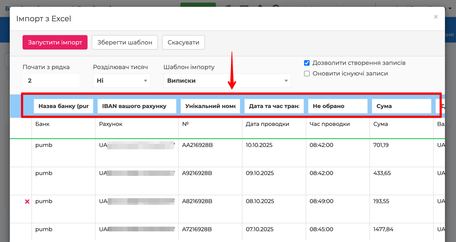 Для цього натисніть «Зберегти шаблон» — і під час наступного імпорту система автоматично підставить усі потрібні поля.