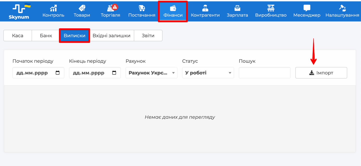 Система обробить файл і створить усі виписки у розділі Фінанси → Виписки.