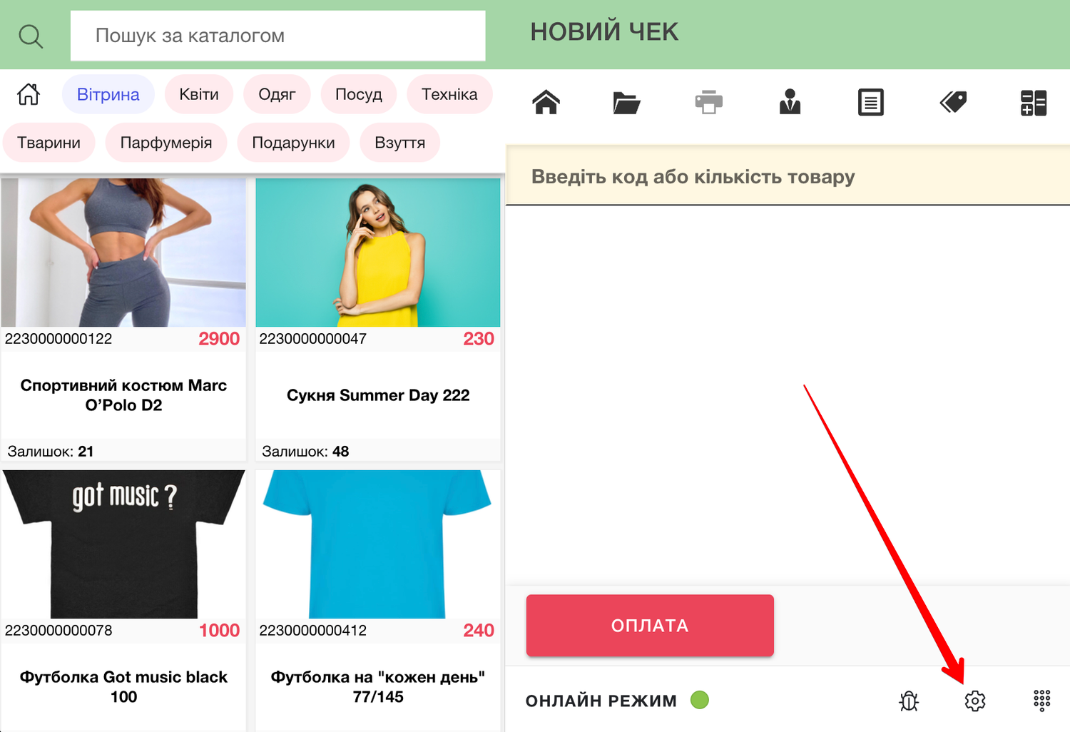 Щоб прийняти оплату, сформуйте чек у звичайному режимі: додайте товари, вкажіть потрібну кількість і натисніть кнопку «Оплата».